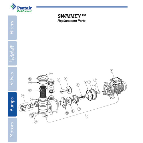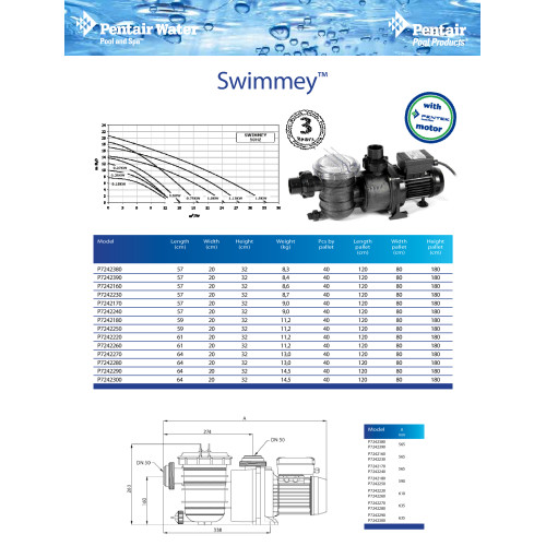 Насос Swimmey SW-12M 0,37 кВт, 7,5 м3/ч, 220В, подключение 50 мм (P7242160)   Pentair Water