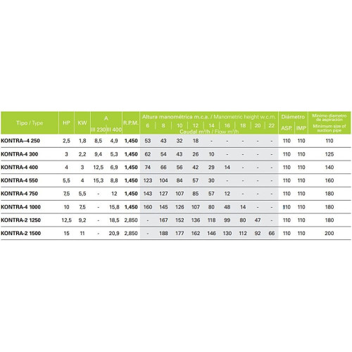 "Насос KONTRA 4- 300 ,1450 rpm  400B, 43 m3/h, 2,2 кВт. Фланец 110 мм, без предфильтра, Saci"