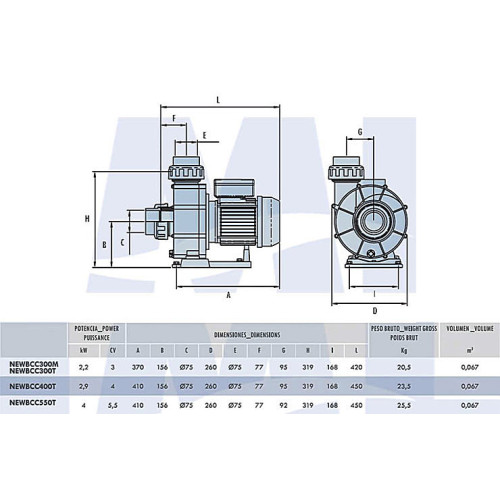 "Насос NEW BCC 300M 58м3/ч, 75 мм, 2,4 кВт, 220 В,без префильтра, подключение 75 мм, IML"