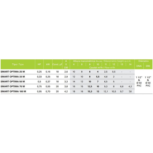"Насос SMART Optima 33M, 220B, 8 м3/ч, 0.25 кВт, подключение 50 мм / 1,5", Saci"