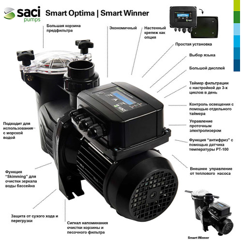 Новая электронная система для самовсасывающих насосов с большим предфильтром SMART Control , применимая к серии Optima и Winner, представляет собой встроенную систему управления.