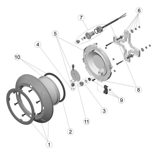 Навесная модель прожектора Vagner Pool 80500 очень удобна в случаях, когда осветительные устройства не были установлены в бассейн при строительстве. Специальное крестообразное крепление не нарушает целостности и герметичности покрытия чаши бассейна (в стену бассейна монтируются четыре дюбеля, которые не пропускают воду). При этом навесные осветители не уступают в эффективности стационарным моделям. Прожектор может поставляться с монохромной LED-лампой белого спектра мощностью 100 Вт (предварительно в устройстве находится галогенная лампа).