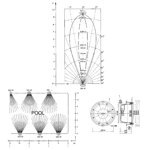 Прожектор предназначен для подводной подсветки воды в плавательных бетонных бассейнах. Особенностью данной модели является возможность поворачивать параболу прожектора в разные стороны, на 15° по вертикали и горизонтали.