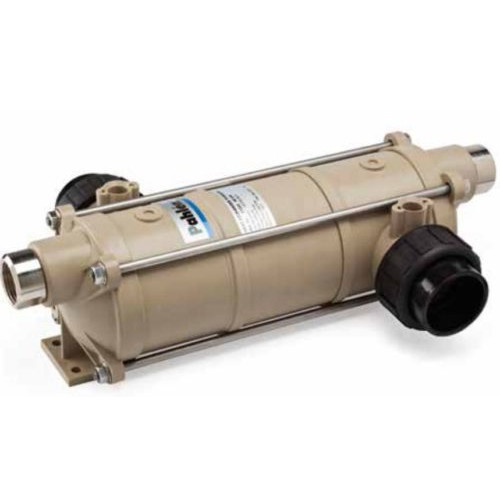 Hi-Temp Titan — спиральный теплообменник с корпусом из армированного термостойкого пластика, спираль выполнена из титана для эксплуатации в средах с высоким риском коррозии. Для использования в плавательных бассейнах с соленой водой или c солевым электролизером.