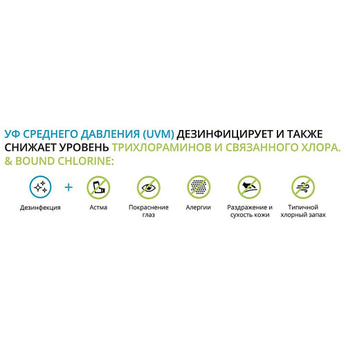 • *Значительно (до 50%) снижает расход химпрепаратов для обработки воды в бассейнах