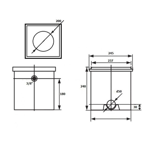 Контроль уровня воды – пластиковый корпус, дизайн крышки как у скиммера HAYWARD – поплавковая система долива воды. Присоединение 50 мм. Присоединение клапана 3/8“ наруж.