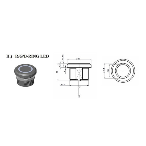 Пьезокнопка с подсветкой RGB, нерж.сталь, IP69,, кабель 15м