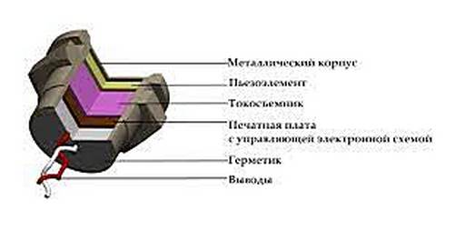 Вследствие деформации на электродах пьезоэлемента возникает электрический импульс, который является достаточным для управления ключом переменного тока.