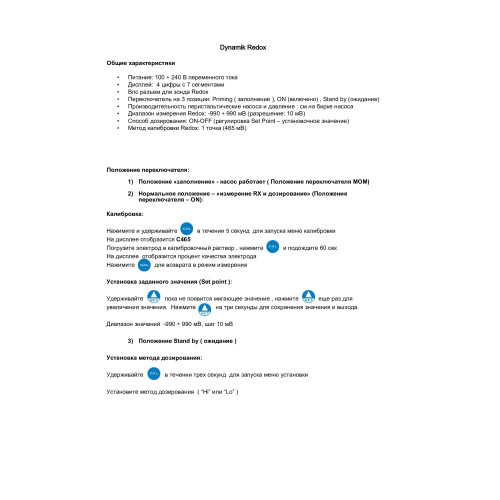 Перистальтическая система дозирования со встроенным контроллером ORP(±990), разработанная для использования в плавательных бассейнах. Постоянное дозирование.