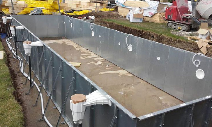 • Панели шириной 80 см с ребрами жесткости толщиной 2 мм позволяют создавать бассейны любых размеров. Каждая деталь спроектирована так, чтобы облегчить работу по установке.
