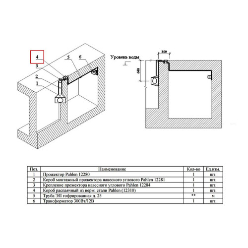Блок для соединения и герметичного хранения проводов, идущих от генератора к прожекторам плавательного бассейна.