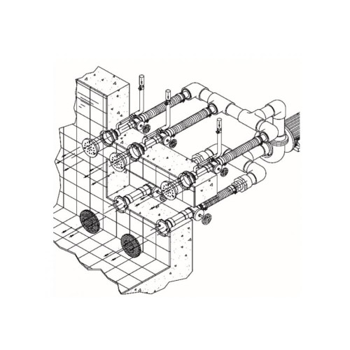 Набор закладных элементов для монтажа гидромассажной системы Combi-Whirl 3 в коммерческий или домашний бассейн, облицованный плиткой, мозаикой или пленкой.