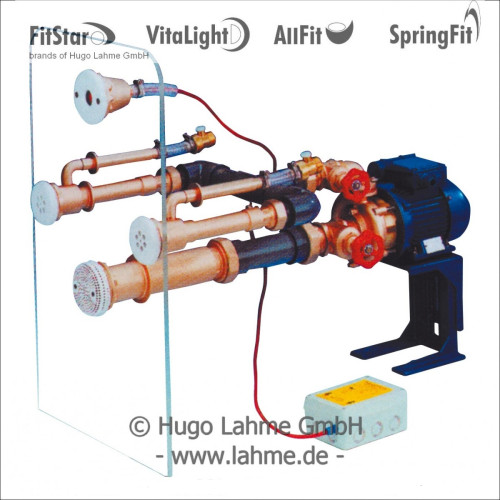 Система гидромассажа Fitstar встраивается в стену бассейна и включается с помощью пневмокнопки. Забор воды из бассейна осуществляется с помощью всасывающей форсунки, после чего мощный циркуляционный насос под давлением подает воду обратно в бассейн. В комплект поставки входят закладные элементы (лицевые панели) из бронзы. Форсунки выполнены из полированной нержавеющей стали.