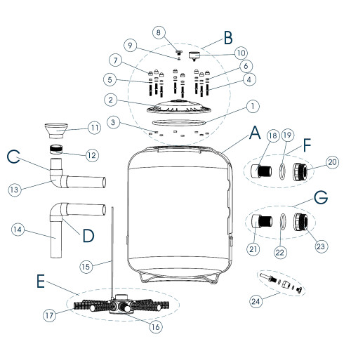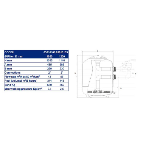 Песочный фильтр с боковым креплением с клапаном 2″ в комплекте Ø 1200 — 48″, AQUANT