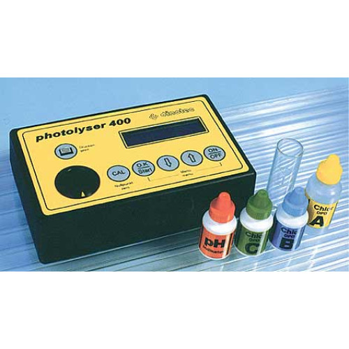 Цифровой фотометр с микропроцессорным управлением и автономным питанием для анализа питьевой воды и воды в бассейне. Оснащен ячейкой памяти.Измеряемые параметры: алюминий, аммоний, бром, средство dinofresh, свободный хлор, общий хлор, циануровая кислота, железо, общая жесткость, медь, марганец, нитрат, уровень pH, фосфат, хлорид, буферная емкость (KS 4.3), средство Poolcare и озон.Серийная комплектация в пластмассовом футляре:- измерительный прибор Photolyser 400,- 3 измерительные кюветы с пробкой,- палочка для размешивания,- реагенты для определения свободного и общего хлора, брома, озона, уровня pH, средства dinofresh, а также 4 батарейки (типа миньон).