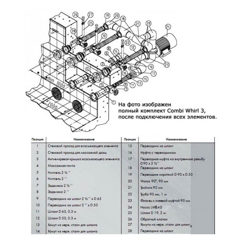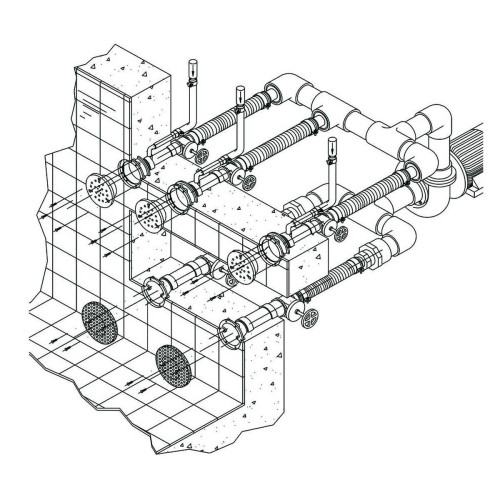 Система гидромассажа Fitstar Combi-Whirl встраивается в стену бассейна и включается с помощью пневмокнопки. Забор воды из бассейна осуществляется с помощью всасывающей форсунки, после чего мощный циркуляционный насос под давлением подает воду обратно в бассейн.