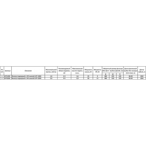 Данный тип фильтров – это идеальное решение для небольших прудов и водоемов. Подводный фильтр – это фильтр, где собрано «все в одном». В комплект фильтра входит насос, ультрафиолетовая лампа (УФ), фильтрующий мягкий мат, пластиковая биозагрузка в виде шаров и специальный субстрат для формирования колоний полезных бактерий для биологической очистки, а так же фонтанная подающая трубка.