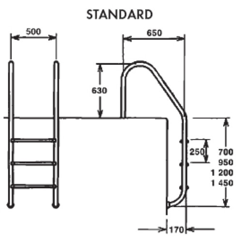 Лестницы изготовлены из полированной нержавеющей стали AISI 304,  труба диаметром 43 мм.