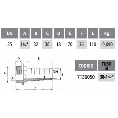 Дорн шланговый 32х38-1,5" наружный, Coraplax