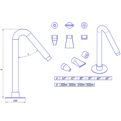 Водопад «Водяная пушка» Труба Ø 60 мм Полированный высота 1500мм. Сопло конусное, Сталь AISI 316