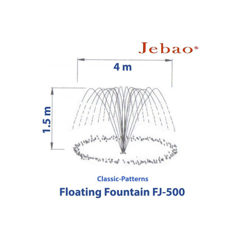 При помощи разных насадок можно создать разные формы и размеры водных потоков. Примеры фонтанов с размерами и возможными водными узорами показаны на картинках к данной модели Jebao FJ-500. Выбор и установка узора осуществляется индивидуально без возможности автоматической смены насадок.
