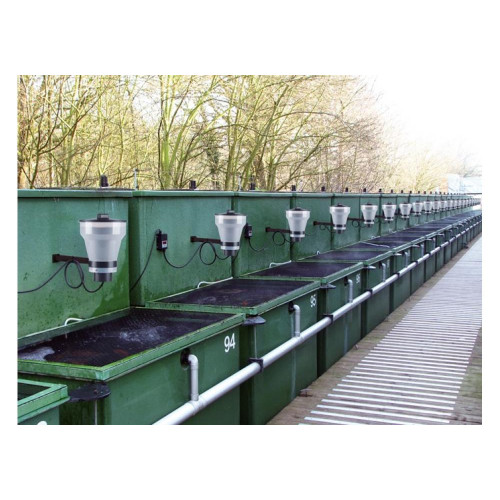 Предназначена для автоматической дозировки корма для рыб. Размер зерна корма от 2 до 9мм. Длина сетевого кабеля – 9 м. Объем контейнера для корма – 7 литров. Максимальная длительность работы устройства (дозирования) составляет 120 секунд в час. Количество корма, которое выпадает из кормушки, зависит от вида и формы корма, а также от продолжительности работы в секундах раздатчика корма.