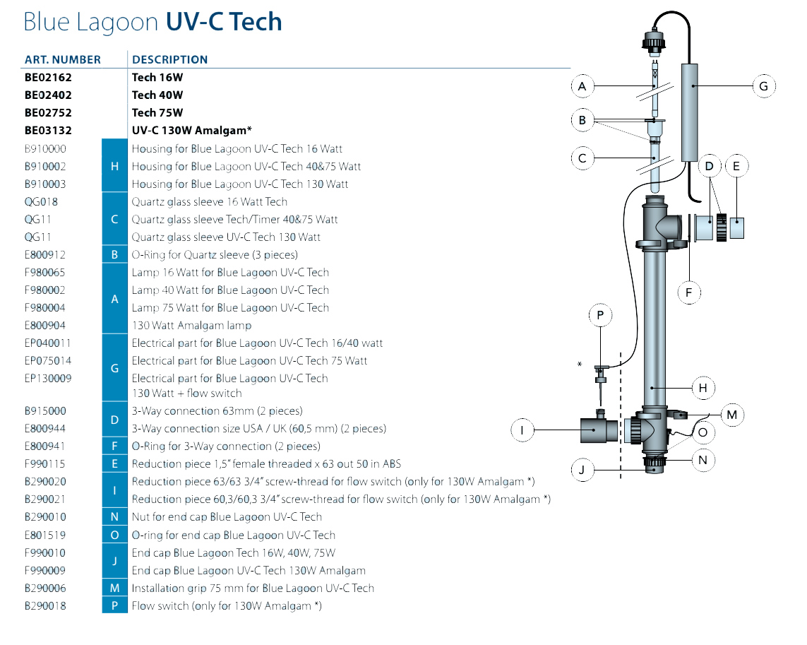 Комплект лампы Blue Lagoon Tech UV-C, 130 Вт Amalgama (VGE)Характеристики:Мощность лампы130 ВтРекоме..